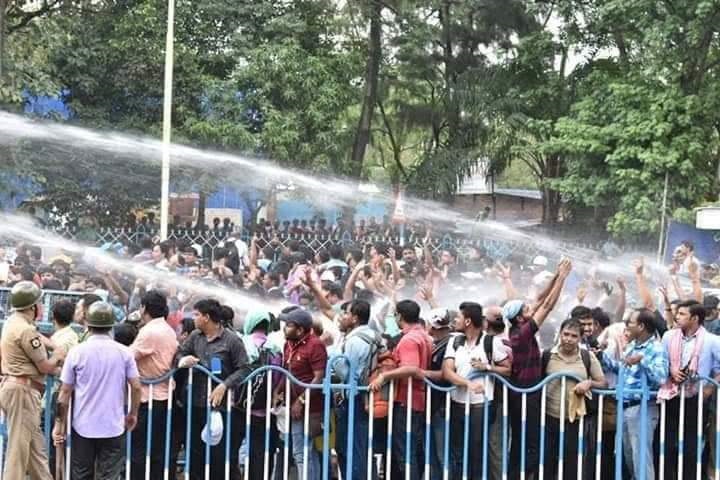 তা সেই সত্তর হাজারের এক-আত্মা উস্থিয়ানদের মিছিল এক সময় এগিয়ে চলল। আমি ছিলাম একেবারে পিছনের দিকে, সুবোধ মল্লিক স্কোয়ারেই দাঁড়িয়ে আছি। অগুনতি মাথা তখন পৌঁছে গেছে সেই ডোরিনা ক্রসিংয়ে। সামনে থেকে কে যেন এসে বললেন প্রচুর পুলিশ মোতায়েন হয়েছে আমাদের জন্য। কেউ পিছু হটবেন না। আমি আর নির্ঝর পিছন থেকে তখন শ্লোগান তুলে পেছনের সারির শিক্ষকদের নিয়ে এগিয়ে চলেছি। ট্যাবলোর উপরে বর্ধমানেরই রাজেশ, সুমনদা, পুরুলিয়ার সঞ্জীব শতপথি আরও অনেকে। আবার একজন এসে বললেন রানি রাসমণিতে পুলিশ ব্যারিকেড দিয়ে আমাদের পথ আটকে রেখে দিয়েছে। পিছন থেকে তখন অনন্ত পাত্র (বাম জমানায় পিটিটিআই আন্দোলনের আহ্বায়ক ও উউপত্বার রাজ্য কমিটির সদস্য। ওঁকেও বদলি করা হয় হোম সার্কেল থেকে পুরুলিয়াতে। সেই ক্ষোভে গ্রামের মানুষ বিক্ষোভ দেখায় সে সময়। খবরের কাগজে সে সব আলোড়ন সৃষ্টি করেছিল এক সময়।) সহ আমাদের নেতৃস্থানীয়রা এগিয়ে গেছেন সামনে। এক সময় জলকামান প্রয়োগ করে পুলিশ আমাদের ছত্রভঙ্গ করার চেষ্টা করল। চালাল ফাইবার স্টিক নিরীহ শিক্ষক-শিক্ষিকাদের উপর। পেছন থেকে প্রথমে হতচকিত হয়ে পড়লেও সকলে রুখে দাঁড়ালাম আমরা। সামনের সারির শিক্ষক-শিক্ষিকারা ওই প্রহার, ওই জলকামানকে ভয় না-পেয়ে এবার শক্ত হয়ে দাঁড়িয়ে পড়লেন ওখানে। যে রাজ্যের মুখ্যমন্ত্রী বাংলার শিক্ষা, কৃষ্টি ও সংস্কৃতির পুনরুদ্ধারের কথা বলেন আড়ম্বর করে, বিশ্ব বাংলার কথা বলেন, সেই রাজ্যের পুলিশ মন্ত্রীও তো তিনি। তাঁরই পুলিশ লাঠিচার্জ করছে, জলকামান ছুঁড়ছে শিক্ষক-শিক্ষিকাদের উপর?