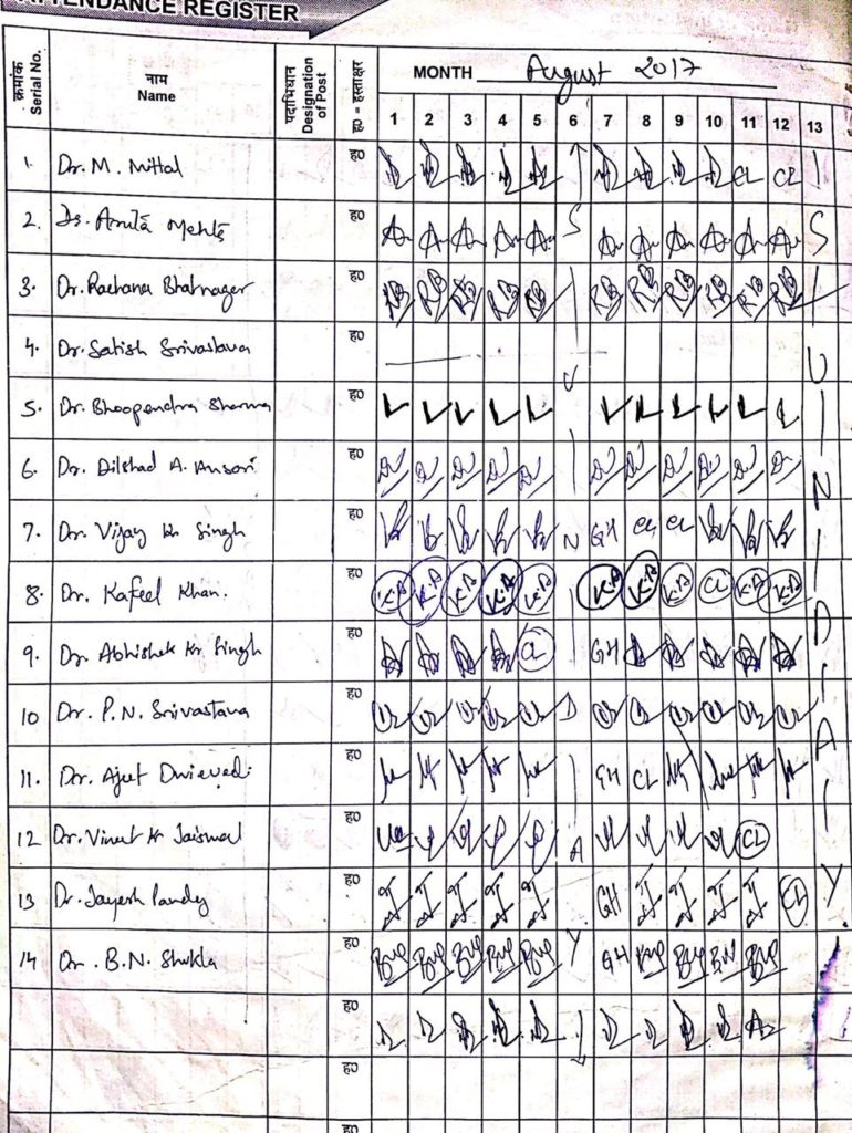 Copy of Attendance Register showing that Dr Khan was not on duty on the 10th.