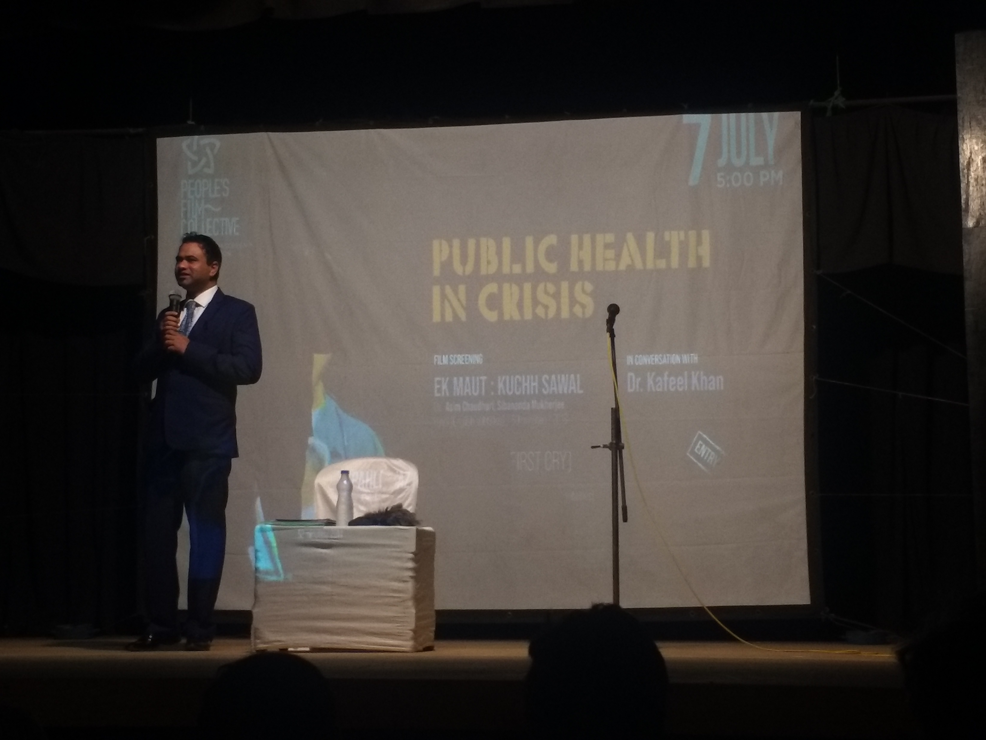 Dr Kafeel Khan speaking at the event organised by People’s Film Collective at Jogesh Mime Academy, Kolkata.