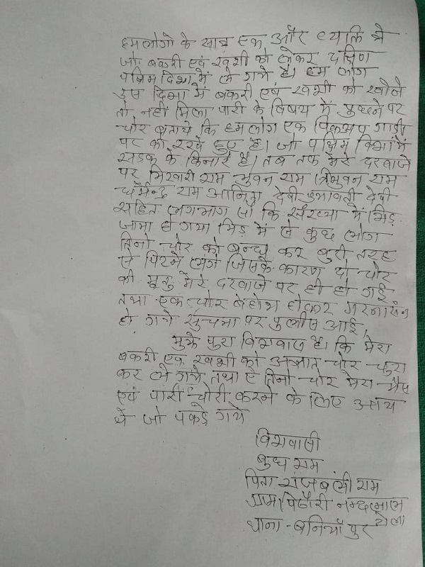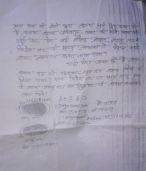 These are the two narratives then that represent the same incident. So far, two FIRS have been lodged by the parties involved. On the behalf of the three deceased, Naushad’s elder brother Md Azad lodged an F.I.R (Case number 231/19). Timing of this FIR is 8.45 a.m. In this FIR, Raju Ram, Satyanarayan Ram, Bhola Ram, Patel Sah and Nandkishore Panheri and others have been named as the accused. In the other FIR, lodged by Budhan Ram, three “unknown” thieves have been named as the accused. Budhan’s Ram case no. is 230/19. Strangely, the time, when was this FIR was lodged is not mentioned.