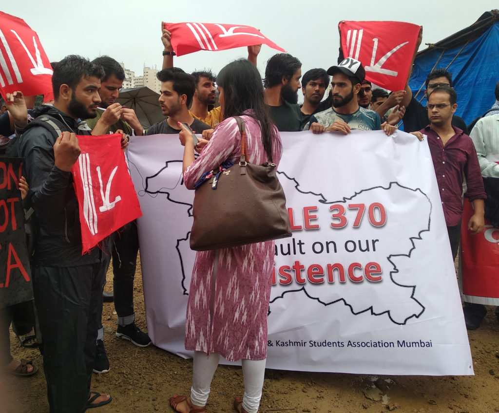 On Wednesday, several Left and Democratic groups in Mumbai, including the CPI, CPI(M), DYFI, Janata Dal (Secular), and the Jammu and Kashmir Students’ Association Mumbai organised a meeting at Azad Maidan, Mumbai, protesting the scrapping of Articles 370 and 35A of the Indian Constitution, violation of the statehood of Jammu & Kashmir, and the unprecedented lockdown that has stunned the valley, and the world, for six days now. No communication is being allowed between those inside Kashmir and those outside. “Please do something to stop the ethnic cleansing of Kashmiris and our culture! Please help us get connected with our parents, please help us talk to them!”, said one student at the protest. “We were also told that low rank Kashmiri policemen are being sent back to their homes and their weapons are being seized as Government has fears that may be they will use their guns against Indian forces,” said JKSA Mumbai spokesperson.Till the time of publishing this report, neither of them have been able to get in touch with their parents, since Sunday. Given that information from out of Kashmir has been totally blocked and a media vacuum has been created, this GX report is an attempt to document what Kashmiri residents currently living in Mumbai are saying.
