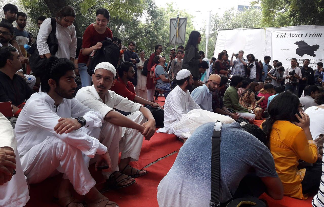 The call that had gone around on social media was simple. Given the information and communication blackout in Kashmir have made it impossible for Kashmiris in Delhi to observe Eid with their family and community members back home, the strikewala JantarMantar would be the substitute space to observe the festival. There was no political message attached to the call so far. But, the spectre of the information blockade loomed large on the whole event. What loomed large was the fact that almost all the Kashmiris who are attending the event, are living amongst huge amounts of uncertainty, without really knowing what is happening at home. So, in a strange kind of a way, in spite of the effort of the organizers to not engage in any direct political debates, the event turned out to be political from the very beginning.