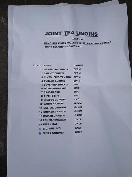The workers are angry. After the last meeting failed to yield any results, the unions intensified their protests. Gate meetings, blocking of tea dispatches, and hunger strikes are being observed in different tea gardens across the hills. In some tea gardens, the owners came to distribute a bonus of 12% but the workers refused to accept it. The workers are not willing to accept anything less than 20%. The central leaders of different trade unions sat on a 12-hour hunger strike at Darjeeling motor stand on 3rd October. At various tea gardens in Darjeeling, workers sat for hunger strikes as well.