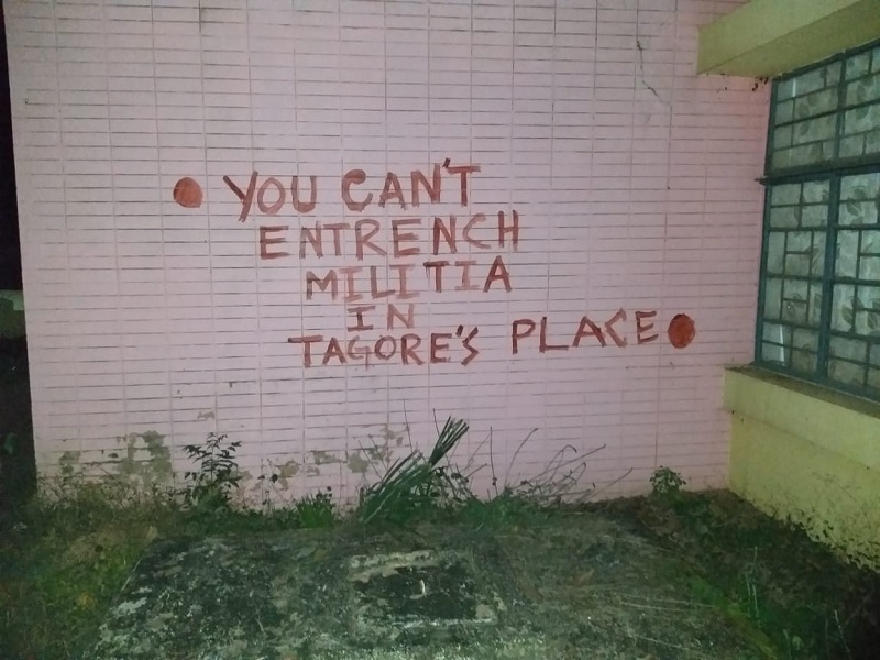 বিশ্বভারতীতে আধা সেনা মোতায়েনের সিদ্ধান্ত কোনো বিচ্ছিন্ন ঘটনা নয়। একাধিক বিশ্ববিদ্যালয়ে মোদি সরকারের উচ্চ শিক্ষায় বাণিজ্যিকরণ ও ‘হিন্দুত্বের’ আদর্শে সেগুলোকে পরিচালিত করার বিরূদ্ধে চলছে তীব্র ছাত্র বিক্ষোভ ও আন্দোলন। বিশ্ববিদ্যালয় গুলোতে মুক্ত চিন্তা, আলাপ-আলোচনা, বিতর্ক, বহুত্বের চর্চার যত টুকু আবহাওয়া উপস্থিত ছিল সেটাকেও ধ্বংস করে সঙ্ঘী হিন্দুত্ব ও ঊগ্র-জাতীয়তাবাদের আখড়ায় পরিণত করতে চাইছে বর্তমান শাসক শ্রেণী। সেই নীল নকশার একটা ধাপ, বিশ্ববিদ্যালয় গুলোতে সিআইএসএফ-এর মত আধা সেনা মোতায়েন করা। রবীন্দ্রনাথের বিশ্বভারতী দিয়ে তার শুরুয়াত হতে চলেছে!