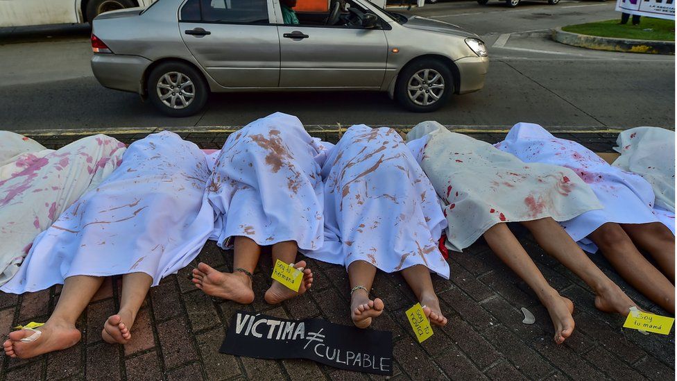 In Panama City, women lay under sheets covered in fake blood to represent those killed as a result of femicide.
