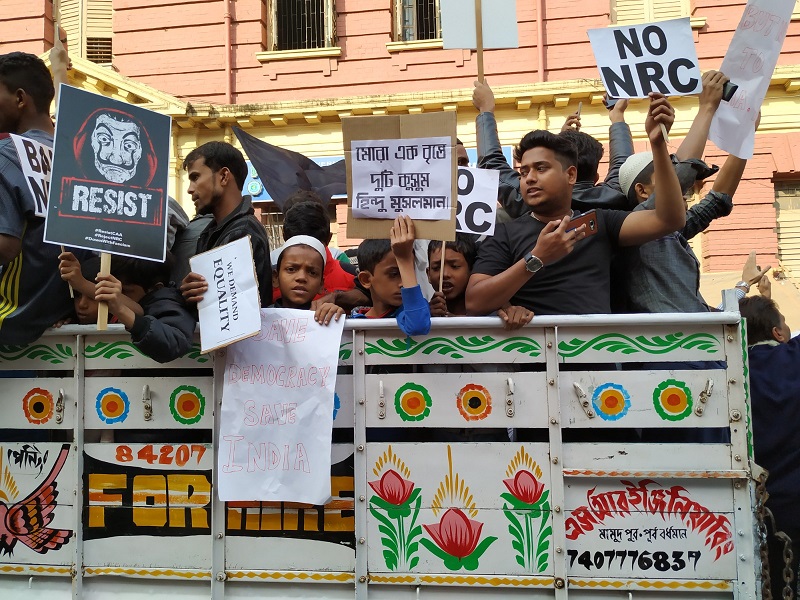 যে তরুণের সঙ্গে আমি হাঁটছি, মিছিলের প্রাকমুহূর্তে সে বদ্যি সৌত্রক রায় এক ফাঁকে জানিয়ে গেল এই হল সোহেল আমার স্কুলের বন্ধু। সোহেলের হাতে জাতীয় পতাকা, সৌত্রকের হাতে প্ল্যাকার্ড ‘নো সিএএ‘। পিতৃপরিচয়ে জানি সৌত্রক বর্ধমানের সিংহবাহিনী পরিবারের বংশধর। আত্মীয়তা–সূত্রে হাটখোলা দত্তদেরও। সোহেলের সম্পর্কে খোঁজ নেওয়া হল না। তবে, একটি বিষয়ে নিশ্চিত হিন্দু–মুসলমানের আটশো বছরের সমন্বয়ী সংস্কৃতির ও একজন। কলকাতা দাঙ্গা, দেশভাগ যে মুসলমানদের পাকিস্তানে পাঠাতে পারেনি। দ্বিজাতিতত্ত্বে ভাগ করতে ব্যর্থ হয়েছে সোহেল তাদের প্রতিনিধি। ৩০ শতাংশ বাঙালি মুসলমান, ১৪ শতাংশ ভারতীয় মুসলমানের প্রতিনিধি। সোহেলরা তো ‘ঘটি‘, যেমন সৌত্রক। এমন আশ্চর্য মিছিলে হাঁটতে হবে ভাবিনি।