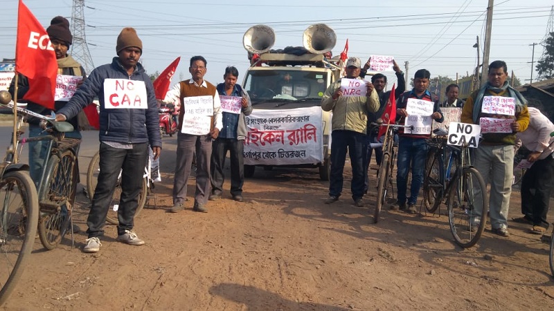 এই যাত্রার প্রাক মুহূর্তে শ্রমজীবী মানুষদের উপর সরকারের আঘাত অন্যভাবেও নেমেছে। এনআরসি, নাগরিকত্ব সংশোধন আইন, ন্যাশানাল পপুলেশন রেজিস্ট্রার প্রভৃতি কর্মসূচির একটাই লক্ষ্য – তা হল, শ্রমজীবী মানুষের জীবনকে বিপন্ন করা। অধিকার সংগঠন তাই তাদের প্রচারপত্রে বলেছে – “নাগরিক সংশোধনী আইন (২০১৯) বাতিল কর। বিভাজনের রাজনীতি রুখে দিতে, উচ্ছেদ লুট ও সস্তার শ্রম যোগানোর হাতিয়ার NRC রুখে দিতে ঐক্যবদ্ধ প্রতিরোধ গড়ে তুলুন।”