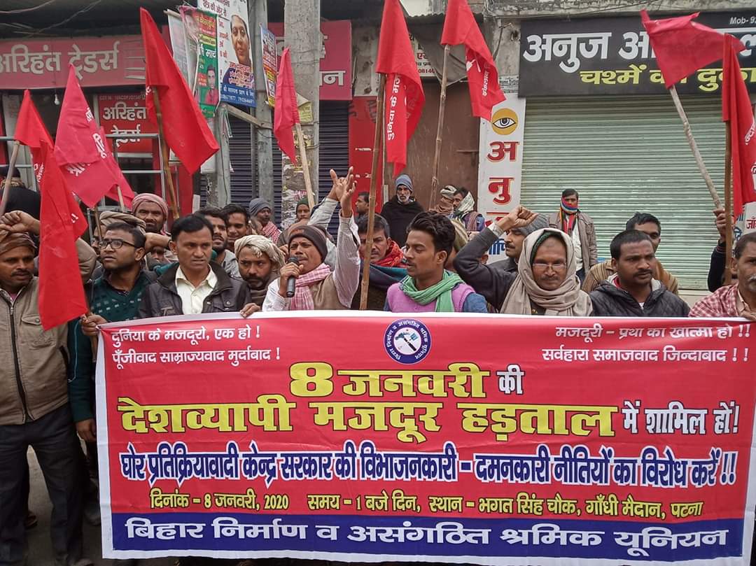 A joint procession of all the central as well as state level trade unions started from the historic Gandhi Maidan in Patna and after passing through Frazer road reached Dakbunglaw Chauk. “All India Kisan Sangharsh Samanvay Samiti”, a forum of 250 farmers organizations from across the country, 13 student organizations, Citizens Forum, cultural and human rights activists, writers, theatre artist, everyone participated in the general strike. These organization held demonstrations on their own and raised their particular demands and issues.