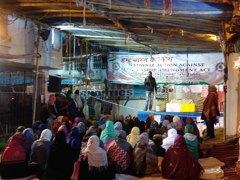 Protest actions against the CAA/NPR/NRC are gathering momentum, not only in Patna, but in different towns and cities of Bihar. Sabzibagh in Patna, Harun Nagar and Isapur in Phulwari Sharif, Lalbagh near Patna University, Alamganj in the city of Patna and Shantibagh in Gaya are new Shaheen Baghs of Bihar. Protest have now entered their 21th day in Shantibagh (Gaya), their 11th day in Sabzibagh (Patna), and their 9th day in Harun Nagar (Phulwari Sharif). Moreover, new protest sites are springing up almost every day in different parts of the state, for example Begusarai, Digha, Buxar, and Samastipur. The regions of Bhagalpur, Muzaffarpur, Kishanganj, and Araria have already taken the lead in the anti-CAA movement. Other cities like Buxar, Siwan, and Gopalganj are following these leading centres. Big rallies and indefinite dharnas (sit-ins) are being organised on an almost daily basis. Most notably, a majority of the protestors are women. Never have women entered public and political life in Bihar in such large numbers. Political analysts are sensing a new phenomenon in the history of mass mobilisations in Bihar.