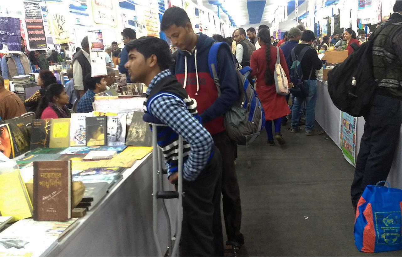উন্নত দেশগুলির থেকে উন্নয়নশীল দেশগুলি অর্থনৈতিক পরিসরের থেকেও মানসিক পরিসরে বহুযোজন দূরে অবস্থান করে তার প্রমাণ পাওয়া গেল ৪৪তম আন্তর্জাতিক কলকাতা পুস্তকমেলায় যা এশিয়ার সর্ববৃহত্তমও বটে। আট লক্ষ বর্গফুট এলাকা জুড়ে সল্টলেক-এর সেন্ট্রাল পার্কে অনুষ্ঠিত এই মেলায় দেশ বিদেশের একাধিক স্টলের মধ্যে ব্যতিক্রম দেখা গেল ব্রিটেন, মার্কিন যুক্তরাষ্ট্র, ফ্রান্সসহ একাধিক প্রথম সারির দেশগুলির স্টলে। অন্যদিকে বাংলাদেশসহ ভারতের অধিকাংশ স্টলে চোখে পড়ল সেই ভয়ঙ্কর দৃশ্য যা আমাদের মত প্রতিবন্ধকতাযুক্ত মানুষদের প্রাত্যহিক মুখোমুখি হতে হয়। স্টলে প্রবেশের মুখে উঁচু দন্ডায়মান সিঁড়ি বুঝিয়ে দিল ভারতের প্রতিবন্ধকতাযুক্ত মানুষদের প্রবেশের সীমা/পরিসীমা। অথচ একই স্থানে অবস্থিত উন্নত দেশগুলির ক্ষেত্রে তেমনটা দেখা গেল না। সেখানে সিঁড়ির পরিবর্তে র্যাম্পের ব্যবস্থা ও প্রশস্ত দরজা বুঝিয়ে দেয় সকল মানুষদের প্রবেশে বাধা বা প্রতিবন্ধকতা নেই।