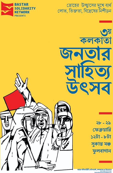 বস্তার সলিডারিটি নেটওয়ার্ক কলকাতা-র উদ্যোগে তৃতীয় জনতার সাহিত্য উৎসব শুরু হবে ২৮ ফেব্রুয়ারি, ২০২০। চলবে দু’দিন। ২৮ও ২৯ ফেব্রুয়ারি। বড়ো পুঁজি লালিত সাহিত্য ও শিল্প চর্চা, সেই বৃত্তের বাইরে যাঁরা বসবাস করেন অথবা কাজ করেন, তাঁরাই এই উৎসবে আমন্ত্রণ পেয়ে থাকেন। অর্থাৎ, জনতার সাহিত্য উৎসব মূলত বাহিরিয়ানার উদযাপন। যে বাহির গঠিত হয় কর্পোরেট পুঁজির নির্ধারণ করে দেওয়া সাহিত্যচর্চাকে একধরনের উপেক্ষা করে, যে বাহির গঠিত হয় বড়ো পুঁজি নির্ভর প্রকাশনা সংস্কৃতিকে কলা দেখিয়ে। একটি গ্রাউন্ডজিরো প্রতিবেদন।