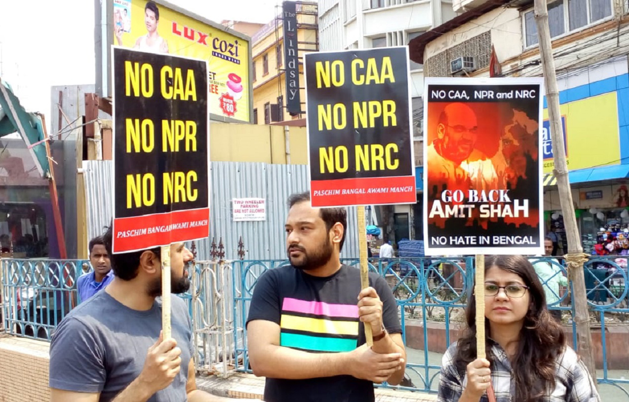 Meanwhile, various leftist student and youth organizations, anti-CAA/NRC movement activists staged a number of protest demonstration in many parts of the city opposing Amit Shah coming to Kolkata and creating communal divide among the people. Black flags, posters and banners with “Go Back Amit Shah” slogans were hoisted by the protesters. They held Amit Shah responsible for the attacks on Muslims in Delhi by riotous Hindu mobs backed by the police force which operates under him.