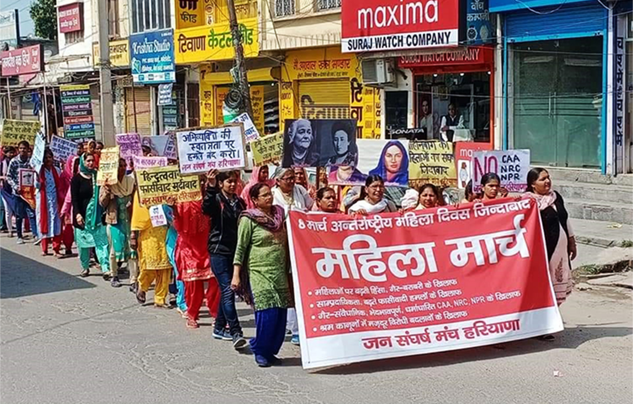 Cover Image : A rally by Jan Sangharsh Manch Haryana, on 8th March, 2020.