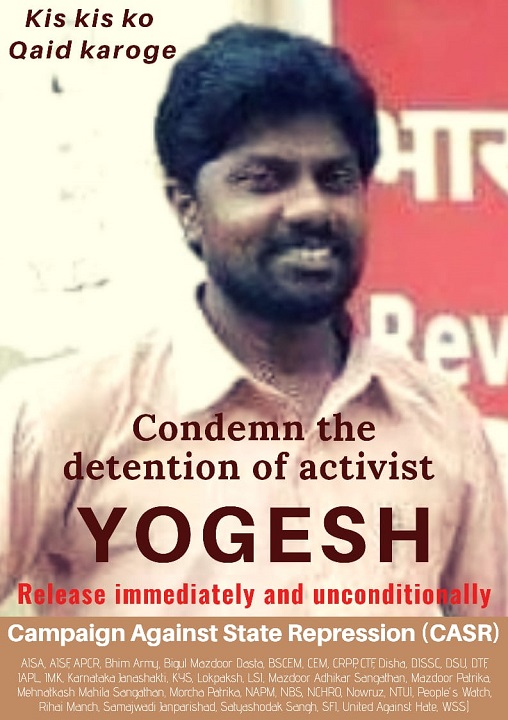 The Campaign Against State Repression (CASR) denounces these vile actions of the Delhi Police against the activists from the minority community and progressive organisations and demands the release of all persons arrested in connection with the protests against the CAA, NRC and NPR including Sharjeel Imam, Akhil Gogoi, Khalid Saifi, Soneshwar Narah, Pranab Doley, Meeran Haider and Safoora Zargar among others. CASR also demands an immediate cessation to all activities of the Delhi Police regarding the targeting of students and activists during the lockdown and the immediate release of Comrade Yogesh Swamy and all such persons detained by the Delhi Police.