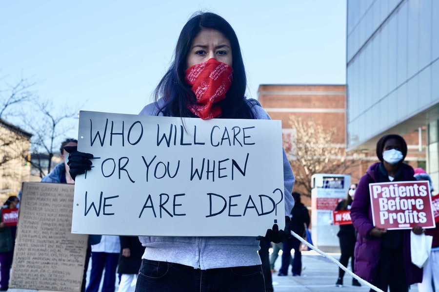 Photo of a healthcare workers protest in New York City to demand safer working conditions. (by Giles Clark/ Ghetty Images). Courtesy : Redfish