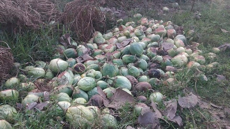 বাঁকুড়ার ছাতনা ব্লকের উষরডিহি-সহ সব গ্রামেই একই অবস্থা। চাষি ৪ টাকা কেজি দরে শশা বিক্রি করছেন। কপি, বেগুন টমাটো জমিতেই নষ্ট হচ্ছে। আট-দশ হাজার টাকা খরচ করে করলা, শসা, ভেন্ডির চাষ করেছেন সুনীল মান্ডি। কতটুকুই বা চাষ? শ’চারেক করলা আর শ’চারেক শসা গাছ রয়েছে তার জমিতে। ২০০ ভেন্ডি। এভাবেই হিসেব করেন প্রান্তিক চাষি। পরিস্থিতি অনুকূল থাকলে দৈনিক ৪৫ কেজি করলা, ৬০ কেজি শসা ঝাঁটিপাহাড়ির আড়তে বিক্রি করতে পারতেন। বাদল মুর্মুর জমিতে ৪০০ বেগুন, ৩০০ করলা আর ৮০০ শসা গাছ রয়েছে। তাঁর হিসেবে অনুযায়ী খরচ হয়েছে ১৭ হাজার টাকা। অথচ, নিত্যপ্রয়োজনীয় দ্রব্য, খাদ্যশস্য, ওষুধ পরিবহনের মতো সব্জিতেও কোনও নিষেধাজ্ঞা ছিল না। লক্ষ লক্ষ টন খাদ্যশস্য, মাছ, সব্জি গুদামজাত, আড়তজাত, বাজারজাত হয়েছে। আবার এমন হাজার হাজার চাষির ফসল স্রেফ জমিতে পড়ে পড়ে নষ্ট হল। কেননা মাঠ থেকে খুচরো বাজারে আনার শৃঙ্খলটি — চাষি-গ্রামের ভেন্ডার-শহরের বড় ভেন্ডার-কমিশন এজেন্ট-পাইকার-খুচরো ব্যবসায়ী — ভেঙে পড়ল যে। এই অশুভ শৃঙ্খলটি চাষিকে পয়সা দেয় না। খুচরো ক্রেতার পকেট মারে। মাঝখান দিয়ে লাভ ফড়ে আর দালালদের। তবুও, প্রান্তিক জেলার অপ্রস্তুত প্রশাসন সক্রিয়তা দেখাতে পারল না। গ্রামের ঘরে ঘরে যদি সরাসরি বিক্রি করতে পারতেন চাষিরা তাহলে না হয় এ যাত্রা কিছুটা রক্ষা পাওয়া যেত। সেই সুযোগটি পেলেন না ওঁদের অনেকেই। আর এই ব্যবস্থার মূল্য চোকাতে হল চাষি আর সাধারণ ক্রেতাকে। বাঁকুড়ার এই তথ্যগুলি জানা গিয়েছে মানবাধিকার কর্মী দেবব্রত গোস্বামীর সৌজন্যে।