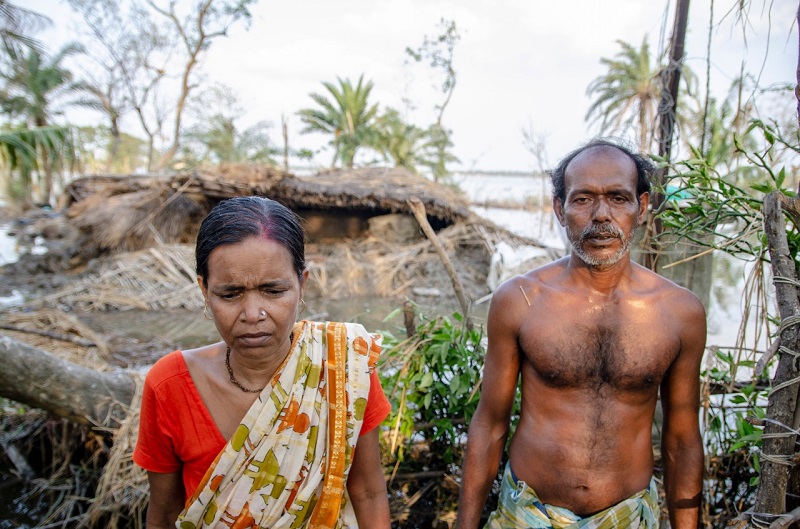 ওদিকে হাউলি পাড়ার বাসিন্দা কেশব চন্দ্র কয়াল, গীতা কয়াল জলে ডুবে ধূলিসাৎ হওয়া ঘরের সামনেই ত্রিপল টাঙিয়ে আছেন টানা এগারো দিন। গ্রামে ১০০ পরিবারের বাস প্রায়, বললেন “বাড়িটা দেখছ বাবা, এক রাতে সব ধ্বংস হয়ে গেছে, গরু বাছুর সব ভেসে গিয়েছে, প্রান বাঁচাতে গিয়ে কিছু বার করতে পারলাম না বাড়ি থেকে, সবটা ভেসে গিয়েছে। পুকুরে নোনা জল ঢুকে মাছ মরছে, জমিতে নোনা জল ঢুকে সব নষ্ট। কোনটা পুকুর আর কোনটা ভেড়ি আর কোনটা রাস্তা কিছু বোঝার উপায় আছে বল? সবচেয়ে আগে সরকারের কাছে অনুরোধ বাঁধটা মেরামত হোক। আর খাদ্যবস্ত্র বাসস্থান এ তো অবশ্যই জরুরি। ভেড়ির উপর ত্রিপল খাঁটিয়ে আছি। এভাবে আর কতদিন?”