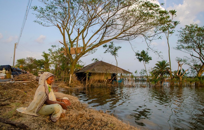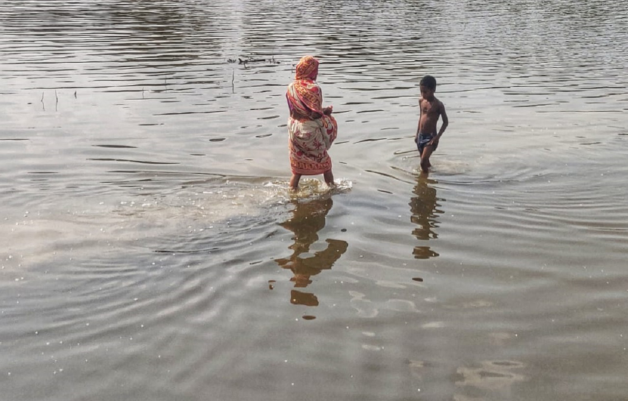 সর্বগ্রাসী ডাঁসা নদীর পাড়ে মাথায় হাত দিয়ে বসেছিলেন কালিদাসি মণ্ডল, নদীর দিকে চেয়ে কি যেন ভাবছিলেন? কি অবস্থা মাসিমা আপনার? বলতেই হা হা করে উঠলেন, পিছনে হাত দিয়ে একটা ভাঙ্গাচোরা মাটির বাড়ি দেখালেন, অর্ধেক এখনও জলে ডুবে। “বাবা, এক রাতের মধ্যে সবটা ভেসে গেল, কিছুই বার করতে পারলাম না, রাস্তায় আছি, সাপের উপদ্রব, সরকারি স্তরে বাবুরা এসে এনকুওয়ারি করবে কবে? কি তাঁরা দেবে সেই ভরসায় আছি।”