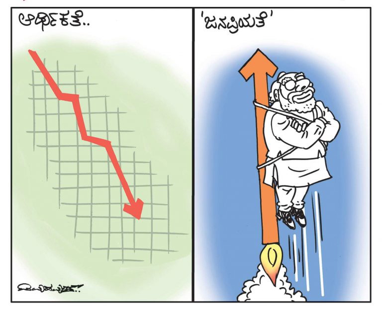 This cartoon was trolled heavily on the internet, where an army of paid right-wing agitators stoke hatred and fear and spread misinformation. This is one of the many reasons why, despite the Modi administration effectively “nuking” the economy, his approval ratings seem to soar, as this cartoon published in varthabharati.in (and featured in The Print) shows: