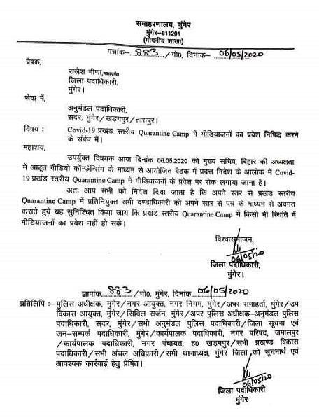 To prevent media persons from reporting the corruption and lack of facilities at quarantine centres, the Bihar government even issued a circular banning journalists from visiting them. Several journalists had to face the wrath of the government and cases were slapped against them for reporting corruption at quarantine centres.