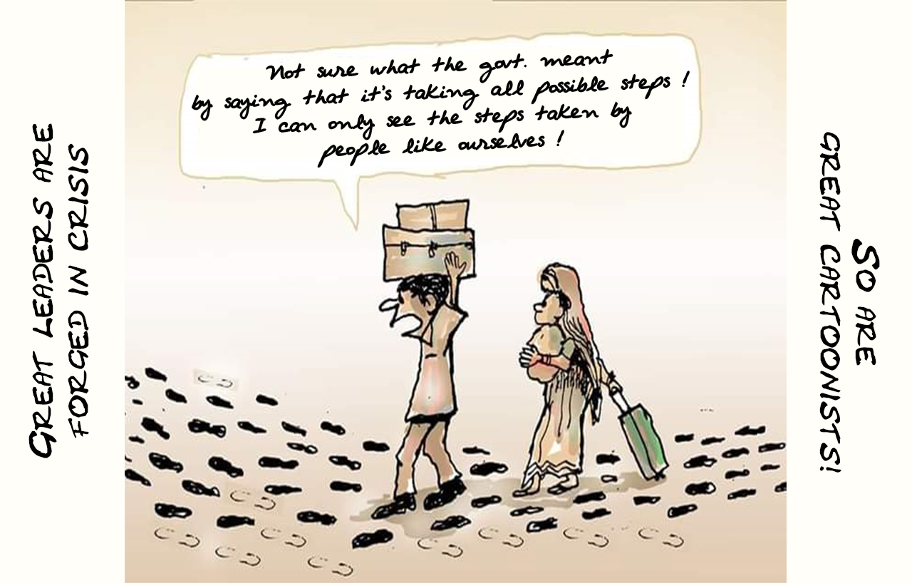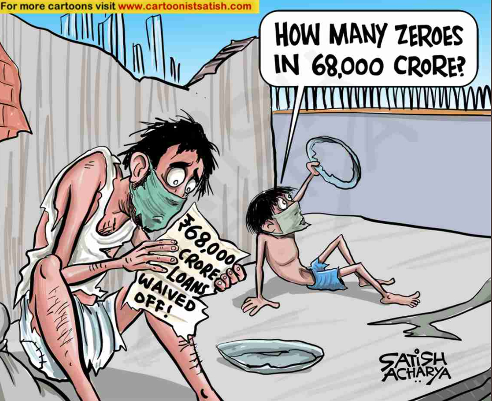The corporate loan waiver also came up in Sathish Acharya’s cartoon where he asked the popular question that came up after the government’s announcement of the 20 lakh crore stimulus package. It was all a big zero for the workers!