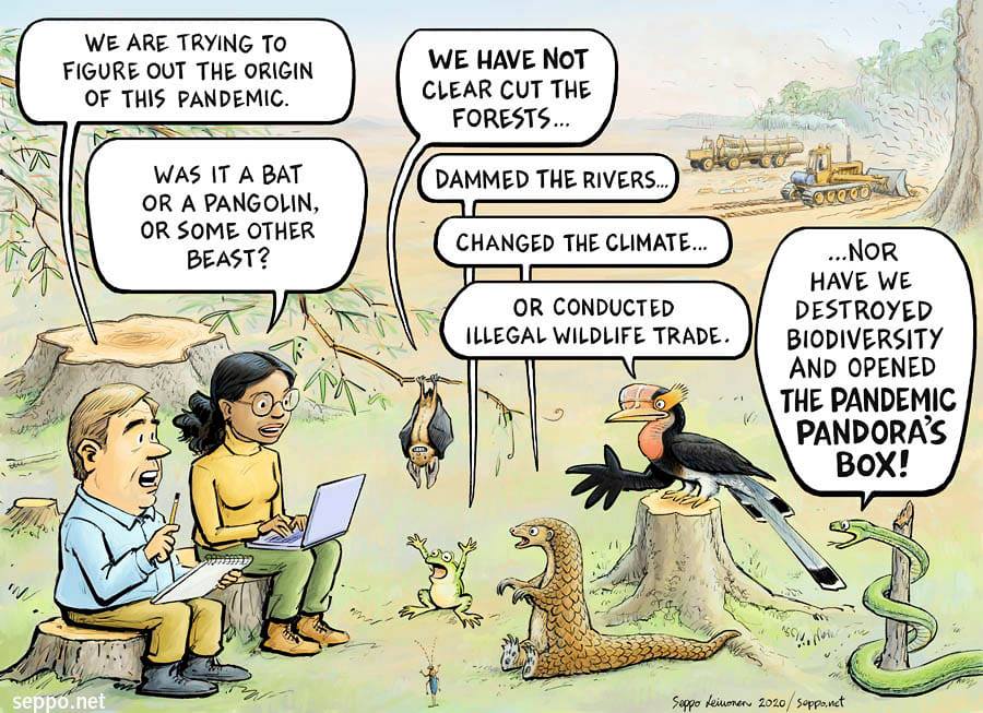 It is interesting that attempts are being made to understand the origins of the pandemic by looking first at our own actions as a species. This reflexivity is heartening to see. One can only hope that, in time, it is more widely appreciated that this ecological destruction is carried out not for its own sake – often drawing on some essentialist views of human beings as fundamentally destructive and rotten – but rather at the behest of neoliberal capital.