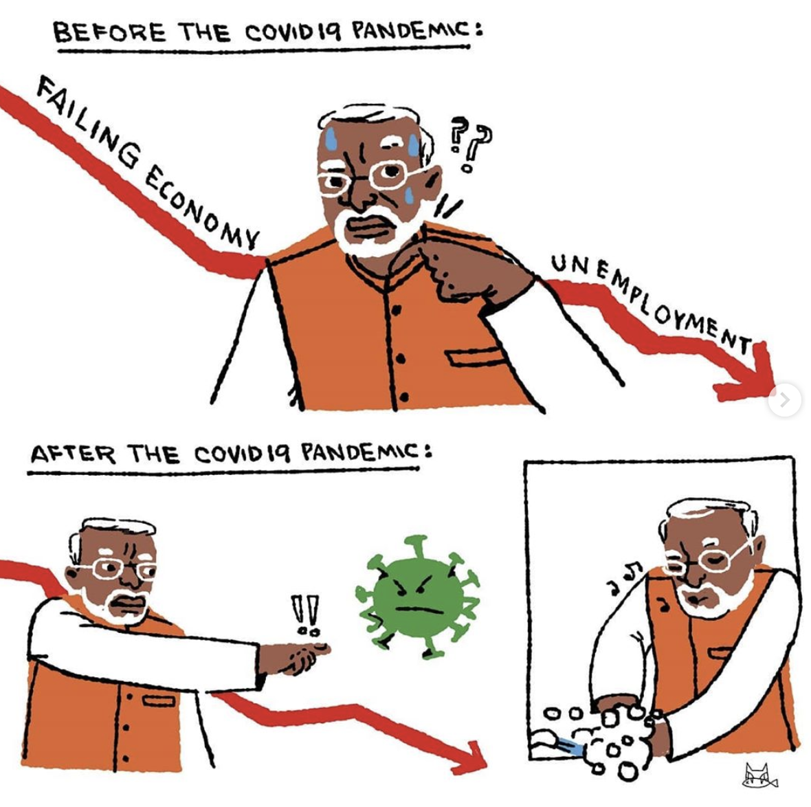 The ruling party might try to wash its hands of all its mistakes and failures, taking advantage of the pandemic and blaming everything on it, but cartoonists like Kruttika Susarla make sure that their skulduggery is documented –