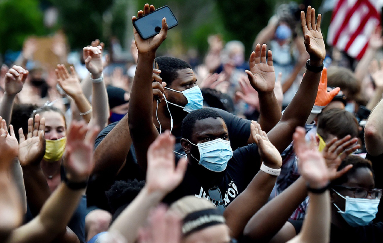 Cover Image : Protesters kneel and hold up their hands in Lafayette Square, near the White House to protest the death of George Floyd. (Olivier Douliery/AFP via Getty Images)