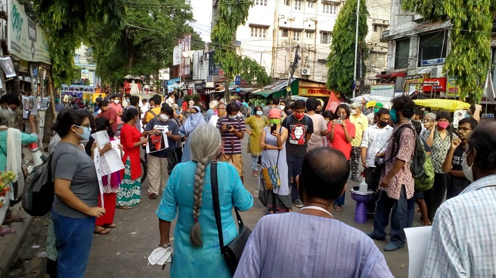 There were songs by the team members of the band Lalon, and Jadavpur Commune. The protest meeting ended with loud sloganeering, and a reminder by the speakers to build up sustained mass political work amongst the diverse sections of the people.