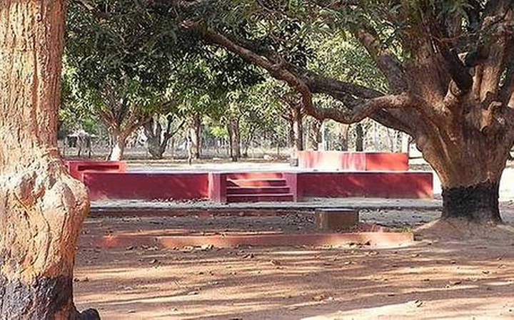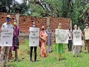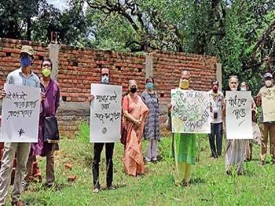 Ashramites, former students and retired employees of Visva-Bharti ptotest against erection of high walls.