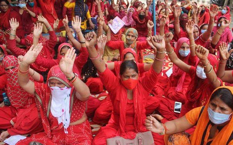 Gurgaon : Asha workers, Anganwadi workers and trade unions extended their support to the Bharat Bandh