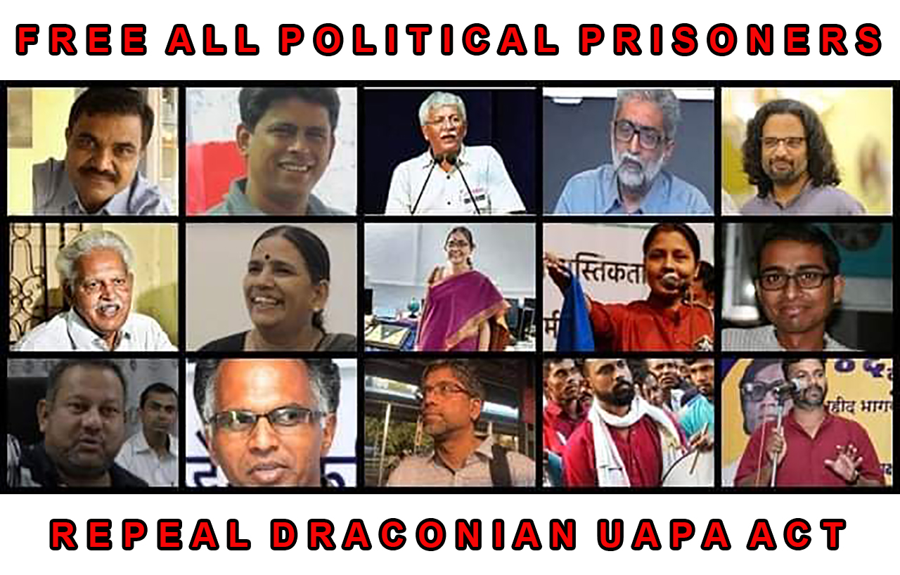 Modi government shall stop forthwith the spate of the arrest of intellectuals and democratic and civil rights activists carried out in the name of Bhima-Koregaon case or Delhi riot case Today the number of people, intellectuals, Lawyers, Cultural activists and democrats arrested and incarcerated in the Elgaar Parishad and Bhima-Koregaon case has reached 15. Democratic right activists and leading public intellectuals of the country like Sudha Bharadwaj, Varavara Rao and Anand Teltumbde have all spent several months in prison without any trial. It is well-known that veteran revolutionary poet Varavara Rao is severely ill and had been hospitalised, Sudha Bharadwaj also has ill-health but their bail petitions have been denied. Recently Hany Babu, a professor from Delhi University and cultural activists of Kabir Kala Manch, Jyoti Jagtap, Ramesh Gaichor and Sagar Gorke have been arrested in the Bhima-Koregaon case. Son – in laws of Varavara Rao, Dr. Sathyanarayana, Kurmanath as well as scientist Prof. Partho Sarathi Ray of IISER Kolkata, Prof. Rakesh Ranjan and Prof. Vijayan of Delhi University have also been summoned some time back. The three lawyers who took up the case for the BhimaKoregaon case have also received summon. Now, Adv. Murugan of Madurai has also been summoned by the NIA.