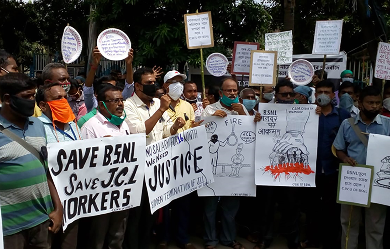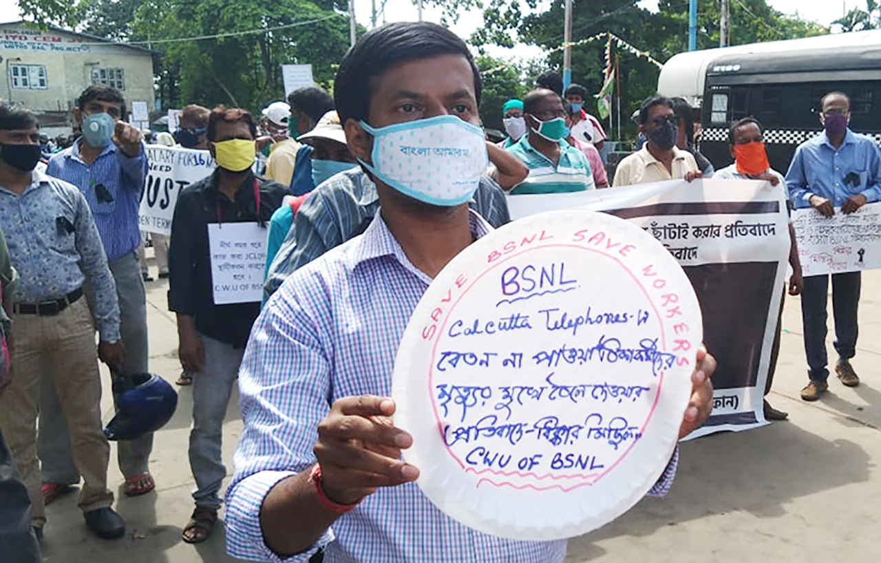 বিএসএনএল কর্মীদের বেতন নেই, আজ দেড় বছর হতে চলল। ২০১৯ সালের ফেব্রুয়ারি মাস থেকে শুরু করে আজ অবধি বিএসএনএল কর্মীরা বেতন পাননি। এক লাখেরও বেশি ঠিকা শ্রমিকদের বেতন মেটাতে কেন্দ্রীয় সরকার অস্বীকার করে চলেছে। সরকারি তরফে জানানো হয়েছে, এই বেতন মেটানোর দায়িত্ব সরকারের নয়, ঠিকেদারদের। ইতিমধ্যে শুধুমাত্র কলকাতা টেলিফোনস-এরই ৮ জন শ্রমিক এই নির্মমতার শিকার হয়ে লকডাউনের মাঝে আত্মহত্যা করেছেন। অন্যান্য রাজ্যে অবস্থাটা আলাদা কিছু নয়। তবে সুশান্ত-দীপিকা-রিয়া নিয়ে ব্যস্ত বাজারি মিডিয়াতে আসেনি সেইসব খবর।