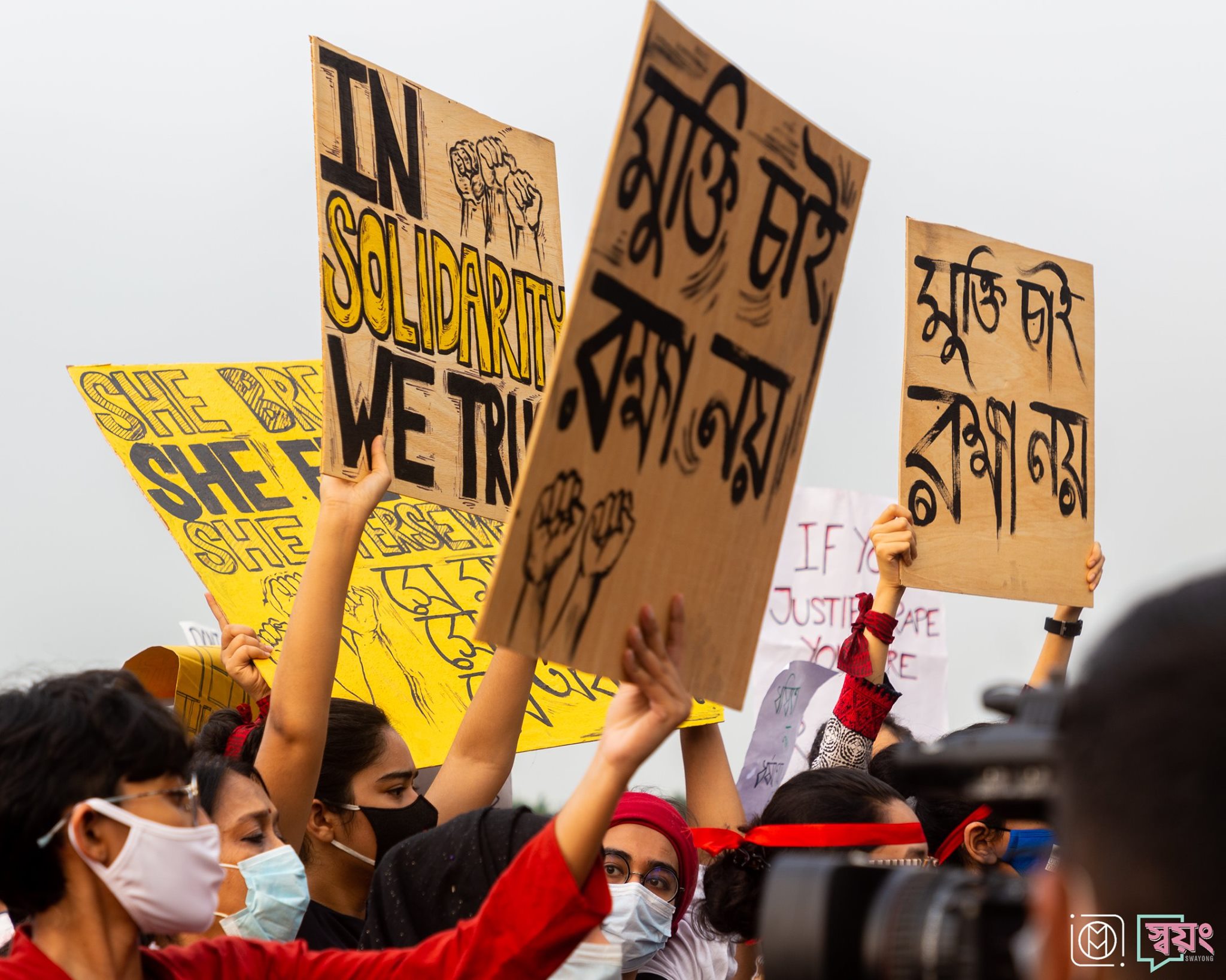 একটার পর একটা ঘটনায় সাধারণ নারীরা এবং সচেতন নাগরিকরা ক্ষোভে ফেটে পড়েছে। দেশজুড়ে শুরু হয়েছে মিছিল সমাবেশ, গণ অবস্থান। প্রতিবাদের ঝড় বয়ে যাচ্ছে অনলাইন এবং অফলাইনে। ঘরেবাইরে কোথাও নারীরা নিরাপদ নয় ৷ এই অনিরাপত্তার দায় কার? রাষ্ট্রকে এর দায় নিতে হবেই। প্রতিটি ধর্ষণের পরে নারীর চরিত্র কিংবা পোশাকের দিকে আঙুল না তুলে, দ্রুত বিচার চালুর দাবিতে প্রতিবাদ সমাবেশ হচ্ছে শাহবাগ, সংসদ ভবনের বাইরে থেকে শুরু করে দেশের গুরুত্বপূর্ণ সব জায়গায়। ধর্ষণ বিরোধী আন্দোলন শুরু হয়েছে ৫ অক্টোবর থেকে, যা এখনো চলছে, যার ফলে সরকার ঘোষণাও দিয়েছে, যে ধর্ষণের সর্বোচ্চ শাস্তি হিসেবে মৃত্যুদণ্ড দেয়া হবে। কিন্তু এই আন্দোলন চলাকালীন সময়ে প্রতিবাদকারীদের উপর পুলিশের হামলা সরকারের সদিচ্ছাকে প্রশ্নবিদ্ধ করছে।