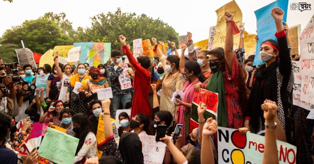 তাছাড়াও, নারী ও শিশু নির্যাতন আইনে ধর্ষণের যেসব প্রকার আছে, তার মধ্যে বিবাহিত সম্পর্কভিত্তিক ধর্ষণের উল্লেখ নেই। এই আইন বলে, বিয়ে হয়ে যাওয়া মানেই যৌন সম্মতি দেয়া। যেকোন সময় স্ত্রীর অনিচ্ছায় করা সঙ্গমকে তাই ধর্ষণ বলে মানতে নারাজ এই আইন। আবারও প্রশ্ন উঠছে, শুধুমাত্র মৃত্যুদণ্ড দিলেই কি ধর্ষণ কমবে? নাকি ধর্ষণের পরে হত্যার পরিমাণ বেড়ে যাবে? সমাজের সমস্ত স্তরে নারীপুরুষদের মানসিকতায় আমূল পরিবর্তন না আনতে পারলে, সবকিছুতে ধর্মের দোহাই দিয়ে অপরাধ ঢাকার চেষ্টা করে গেলে, যৌনতা নিয়ে ট্যাবু বা বিপরীত লিঙ্গ নিয়ে অশ্রদ্ধা বা অসম্মানজনক ভুল ধারণা কাটাতে না পারলে ধর্ষণ বাড়বে বই কমবে না। নারীবাদীরা বলছেন, নারীকে মানুষ হিসেবে দেখা উচিত। তাকে মা-বোন ইত্যাদি বলে করুণার পাত্র বানিয়ে ধর্ষকের হাত থেকে বাঁচানর চেষ্টা করা উচিত নয়। নির্দিষ্ট দল বা রাজনৈতিক এজেন্ডার ঊর্ধ্বে গিয়ে, এই আন্দোলন নারীবাদী সংগঠন, মানবাধিকার সংগঠন, সাংস্কৃতিক জোট এবং সাধারণ মানুষরা মিলে করছেন – এতে আশা জাগে, পরিবর্তন আসবেই।