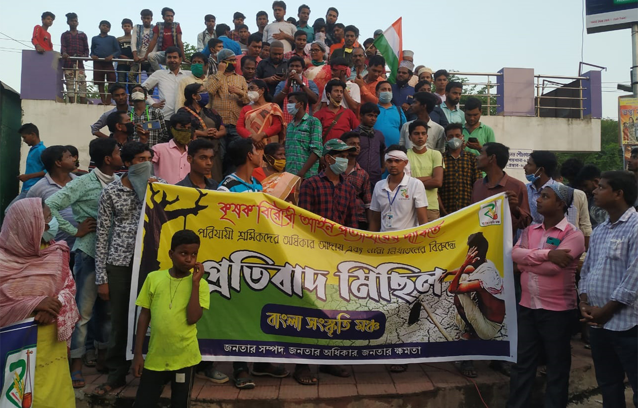 এই মিছিলে উপস্থিত জনতা মূলত কৃষি বিল ২০২০-এর বিরুদ্ধে আওয়াজ তোলেন। বাংলা সংস্কৃতি মঞ্চ মনে করে এই বিল সম্পূর্ণভাবে সাধারণ কৃষকদের বিরোধীই শুধু নয় দুশ্চিন্তার বিষয় হল যে অদূর ভবিষ্যতে এর ফলে জমির কেন্দ্রীকরণ ঘটতে পারে আর তার ফলে কৃষকদের এক বিরাট অংশ ক্রমেই ভূমিহীন দিনমজুরে পরিণত হবেন। এই নিন্দনীয় কৃষিবিল কৃষকদের জন্য চূড়ান্ত ঝুঁকির কারণ হয়ে উঠছে। তাই এদিনের মিছিলে দাবি ওঠে নিঃশর্তভাবে এই কৃষিবিল রদ করার।