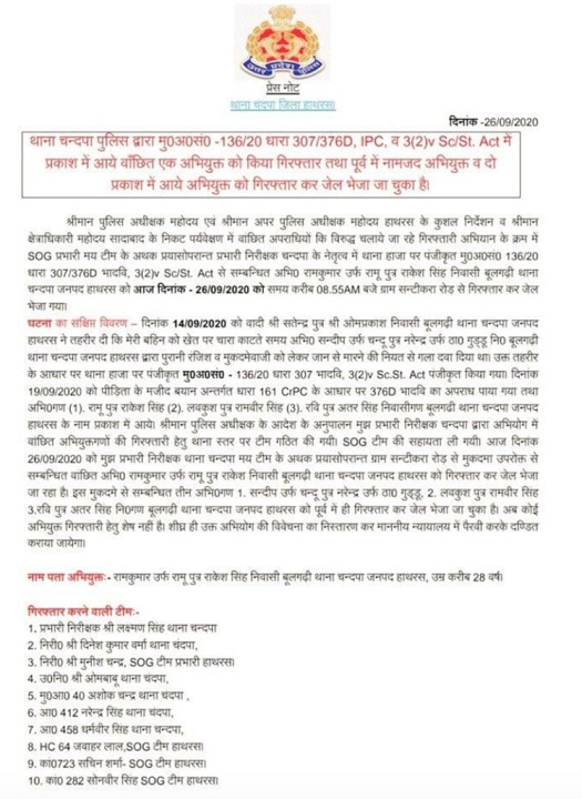 1. Press Releases by Hathras Police and Chandpa Police Station