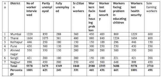 One of the documentation that has been done in the state of Maharashtra is by National Domestic Workers Welfare Trust that works in almost all the districts of the state. The Trust also works in conjunction with the Maharashtra State Domestic Workers Union. The Trust was able to look at the situation of the 5578 domestic workers in Mumbai, Thane, Pune, Sangli, Kolhapur, Ahmednagar and Nagpur in the month of June 2020. The situation would have aggravated in some areas like Mumbai and Thane where transport has not started yet; it might have been less so in other areas where domestic workers do not travel for long distances to go to and from work. This still needs to be looked at.