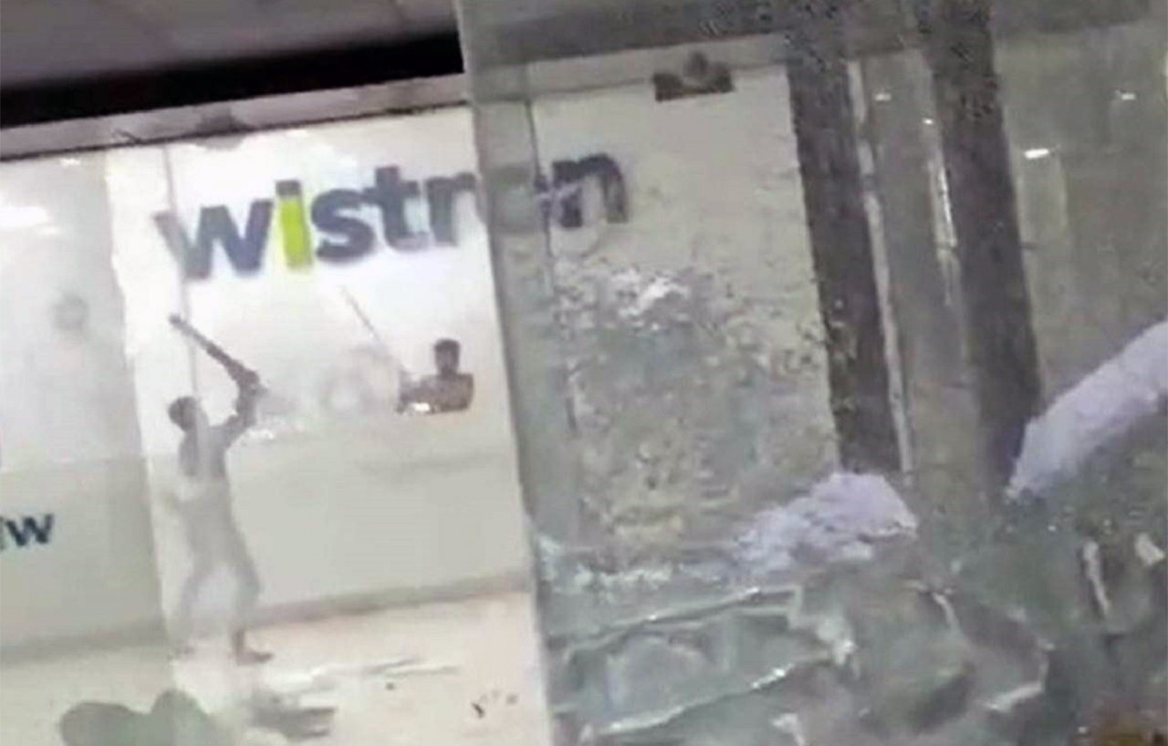 - On 12.12.2020, workers yet again sought their wages from the HR and other Wistron officials but were turned away. This appears to have happened between the night and day shifts and triggered the pent up anger of the workers. Some began damaging the company’s property. They broke glass windows and overturned vehicles and damaged other things. The police rushed to the spot and dispersed the workers. Some of the workers alleged that there were some outsiders who came into the factory and resorted to breaking things.