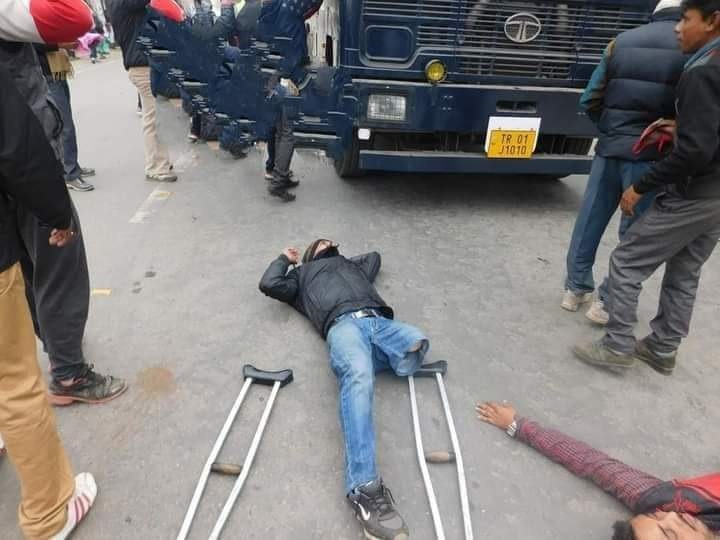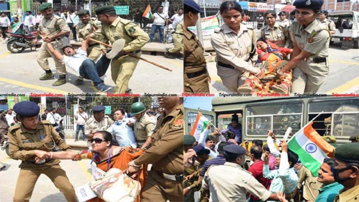 চাকরিচ্যুত শিক্ষকদের জয়েন্ট মুভমেন্ট কমিটি’র ডাকা ধর্নামঞ্চ ২৬ জানুয়ারি ৫২তম দিনে পা দিয়েছিল, সরকারের প্রতি আশাবাদী ছিলেন শিক্ষকেরা, কিন্তু তার বদলে মিলেছে টিয়ার গ্যাস শেল। তবে রাস্তা ছাড়েননি শিক্ষকেরাও, টিয়ার গ্যাসের শেল হাতে তুলে ফেরত পাঠিয়েছে পুলিশের দিকেই। প্রতিবন্ধী একজন শিক্ষক একাই আটকে দিয়েছিলেন জলকামানের গাড়ি। বুঝিয়ে দিয়েছেন, লড়াইয়ের মাঠ খালি হচ্ছে না। এরপর যা শুরু হয়েছিল তা ত্রিপুরাবাসী দীর্ঘদিন মনে রাখবে, সিআরপিএফ ও টিএসআর একযোগে শিক্ষকদের উপর লাঠি চালায়, যাতে বহু শিক্ষক গুরুতর আহত হয়ে বর্তমানে হাসপাতালে চিকিৎসাধীন। কয়েকজনের অবস্থা শোচনীয়।