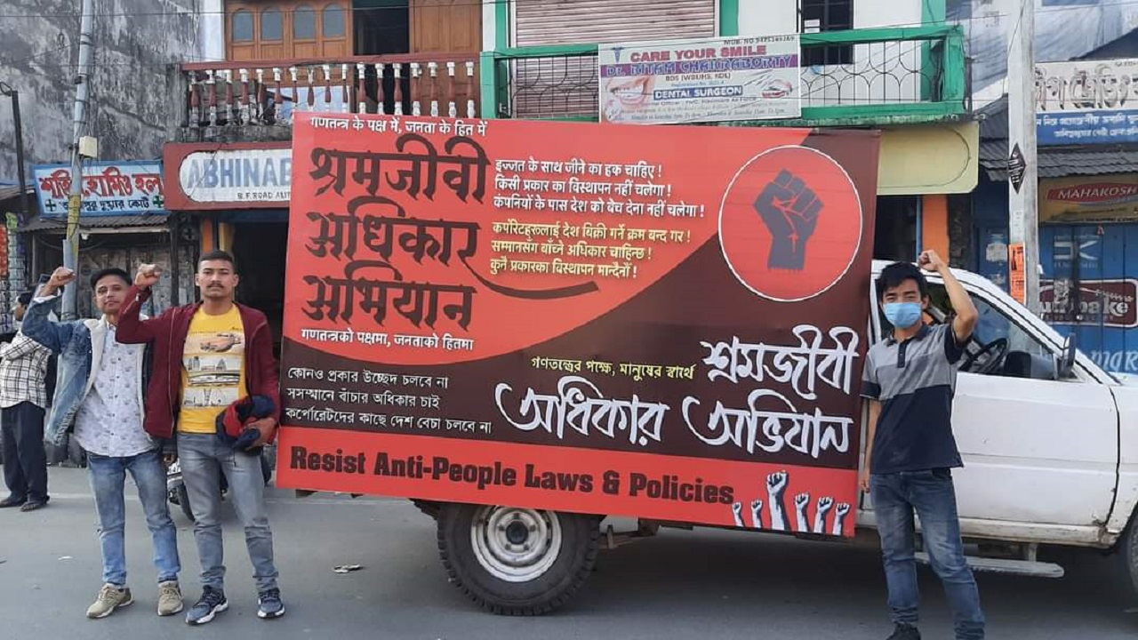 গত ৬ ফেব্রুয়ারি আসাম ও ভুটান সীমান্তে সঙ্কোশ নদীর ধারে কুলকলি ফরেস্ট ভিলেজ – সঙ্কোশ চা বাগান থেকে শুরু হয়েছে শ্রমজীবী অধিকার অভিযান। ডুয়ার্স-তরাই-পাহাড়ের চা-সিঙ্কোনা বাগান, বনবস্তি তথা গ্রাম-শহরের শ্রমজীবী মানুষের জীবন-জীবিকা-অস্তিত্ব-অধিকারের ওপর কেন্দ্রীয় সরকারের নয়া শ্রমকোড, কৃষি ও বন আইন সহ নানা হামলার বিরুদ্ধে আয়োজিত এই প্রচার অভিযানের প্রথম পর্ব অর্থাৎ ডুয়ার্সের পর্ব শেষের মুখে। ১৪ ফেব্রুয়ারি বাগ্রাকোট চা বাগানে এই পর্ব শেষ হবে।