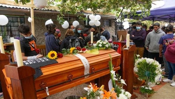 (চিলের পথশিল্পীরা পাঙ্গিপুয়ীতে পুলিশের হাতে নিহত জাগলার ফ্রান্সিস্কোকে শেষ বিদায় জানাচ্ছে।)