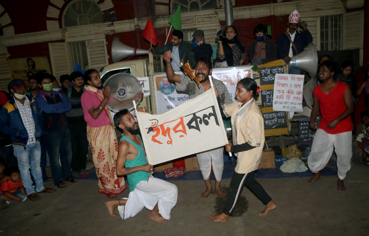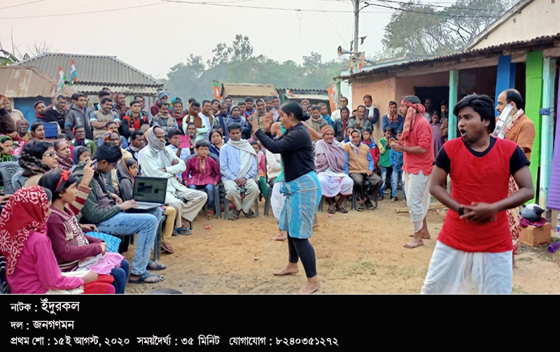 ইঁদুরকল নিয়ে ডোম-বাগদির পাড়ায় তো যাচ্ছে পৌঁছে এই ছুট-পলাতকের দল…গান-নাটকের দল জনগণমন। লকডাউন-কাল থেকেই, অফ্লাইনে! জিজ্ঞেস করলেন না, ‘অফ্লাইন’ নাটক আবার কি? করোনা-যুগে এক নতুন বকচ্ছপের আমদানি হয়েছে, অনলাইন থিয়েটার! তাই বলে না দিলে ঠিক বোঝা যাচ্ছে না! ছুট-পলাতক জনগণমন মাস্ক পরে না পরে, করুনা-জল মেখে না মেখে মানুষের কাছে পৌঁছে গেছে নাটক নিয়ে। মানুষের কাছে তখন রেশনের চাল-ডাল-আলু-সোয়াবিন আর ইঁদুরকল! অফ্লাইন, জ্যান্ত বিনোদন…টাটকা তাজা, খেতে মজা! শুধু পেট না, মন-ও ভরে। জনগণমন – “ইঁদুরকল লেখা হয়েছিল কসবায় বস্তির কচিকাঁচাদের নিয়ে কাজ করানোর জন্য। লকডাউন পরিস্থিতিতে ছোটদের নিয়ে কাজ করা অসম্ভব হয়ে পড়ায় কাজটা এই টিম করে এবং স্ক্রিপ্টটা সামান্য অদলবদল করে লকডাউনের মধ্যেই কাজটা শুরু হয়। লকডাউনে জনগণমন একদিনের জন্যেও থমকে থাকেনি। আমরা তো নতুন দল, তাই আমাদের এনার্জি একটু বেশি, সাথে পলিটিকাল কমিটমেন্ট মিশে আছে। তাই আমরা আলো নিবিয়ে ঘরে বসে না থেকে আমাদের কথাগুলো বলার জন্য ছটফট করছিলাম। আমাদের বলতে চাওয়া কথাগুলোকে ধার করল ইঁদুরকল। সো-কল্ড থিয়েটারের বোদ্ধা দর্শক নয়, আমাদের দর্শকের কাছে থিয়েটার একটা অভিজ্ঞতা, নতুন কিছু কথা শোনা এবং বলার জায়গা।”