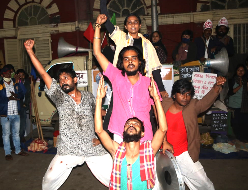 চাষির ঘর ছেড়ে চলে যাবার সময় বাঁশির সুর ভেসে আসছে…ইঁদুর কাঁদছে। ইনশাল্লাহ দর্শকও কাঁদছে! সে কান্না ইঁদুরের কান্না, সে কান্না পথনাট্যকর্মীর কান্না, সে কান্না মফস্বল পথনাট্যকর্মীর কান্না, সে কান্না মফস্বল মহিলা পথনাট্যকর্মীর কান্না। যাদবপুর এইটবি মোড়ের ভরবিকেলের কাঁই-কিচিড়ের মাঝেই দর্শকের নাকের ডগায় কেঁদে, কাঁদিয়ে বেরিয়ে যাচ্ছে বিলকুল…গ্লিসারিন লাগছে না।