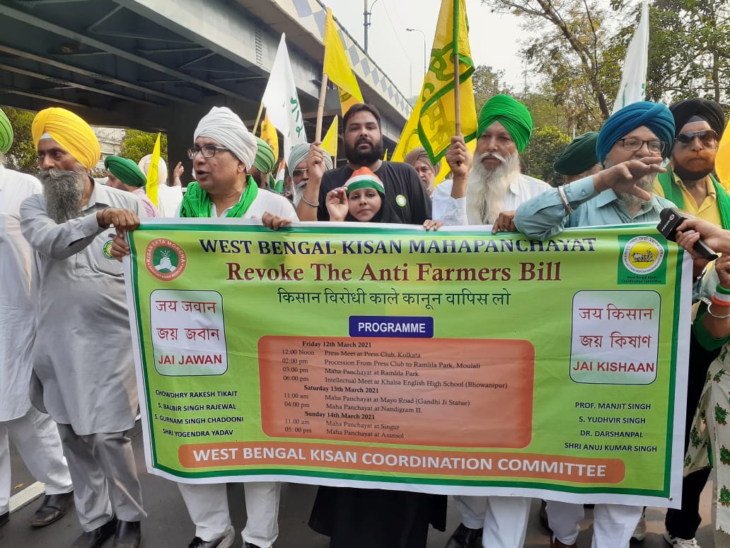 ১১ মার্চ রাতে কৃষক আন্দোলনের নেতারা রাজ্যে এসেছেন। ১২ মার্চ সাংবাদিক বৈঠকের পরে দু’দিনের কর্মসূচির সূচনা হয়। এর পর বাংলার কৃষকদের হাতে দেশের কৃষকদের তরফে চিঠি তুলে দেন তাঁরা। সেদিনই প্রথমে ট্রাক্টর নিয়ে মিছিলের পর দুপুর ৩টে থেকে রামলীলা পার্কে কৃষক-মজুর মহাপঞ্চায়েতে যোগ দেন তাঁরা। ১৩ মার্চ, অর্থাৎ ১৪ মার্চ ‘নন্দীগ্রাম দিবস’-এর ঠিক আগের দিন কৃষক-মজুর মহাপঞ্চায়েত হবে নন্দীগ্রাম-২-এ।