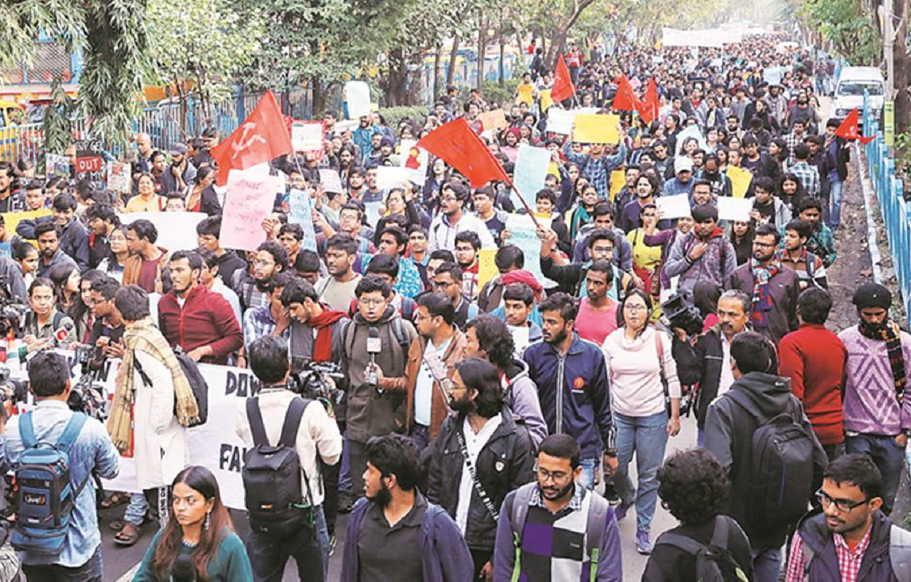 It is important to note here, that the student movement which is opposing this project showcases its pusillanimity, when it opines for a fairy-tale constitutional order which is but never possible. Dr Ambedkar was prescient in his opinion during the adoption of the constitution when he said: “On the 26th of January 1950, we are going to enter into a life of contradictions. In politics we will have equality and in social and economic life we will have inequality.’’ And if these contradictions were not resolved, political democracy would blow up. We are living in times, when perhaps such tension can be witnessed, when the society is on the verge of tearing apart, with the unthinkable inequality that neoliberalism has festered in this country. And the ruling classes are no longer ready to withstand any bourgeois concessions in the fear of an upcoming calamity, and a complete fascistic re-organisation of society is intended. Hence, in the long run, taking refuge behind the constitution alone would not serve the anti-fascist students’ movement, as the increasing fascization of society continues.