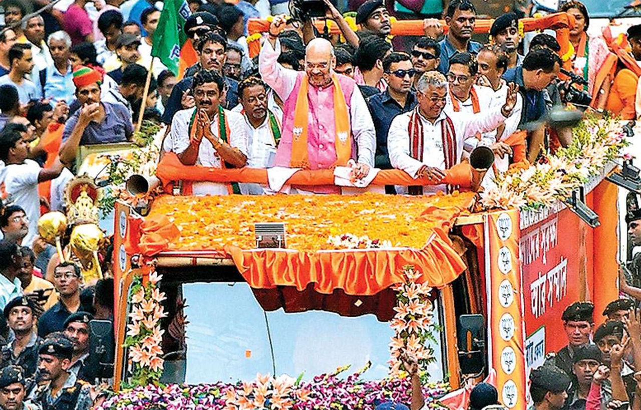 যদি তাতেও কাজ না হয়, ‘পারসেপশানে’র খেলা চলুক। সেটি কিরকম? সাংখ্যবিশ্বে যে মিডিয়া চরে বেড়ায়, বিস্তর টাকা ছড়িয়ে, প্রয়োজন মতো ভয় দেখিয়ে তাদের গলায় ঘন্টি বাঁধা হোক, অধর্মপথে গেলেই টিং করে বাজবে। একুশে বাংলায় যারা বঙ্গমিডিয়া দেখছেন, সবাই জানেন, হাতেগোনা দু-একটি চ্যানেল বাদ দিলে, বাকি সবকটি টিভি চ্যানেল কী অপূর্ব ও সমসত্ব কায়দায় জনতা জনার্দন নির্মাণে ব্যস্ত। ভোটপ্রচার দেখানো হচ্ছে চার বেলা। পর্দা দুই, তিন, চার ভাগ। একটা টুকরোয় তৃণমূল নেত্রী বা তাঁর ভাইপো (অন্য কাউকে দেখানো হয় না, অন্য দল তো দূরস্থান) কিছু বলছেন, বা মুখ নাড়ছেন, কথা শোনা যাচ্ছে না। অন্য টুকরোগুলোয় মোদীর বক্তৃতা কিম্বা শাহের/নাড্ডার রোড-শো। প্রথম টুকরোয় শুধু বক্তাকে দেখা যাচ্ছে। দ্বিতীয় বা তৃতীয় টুকরোয় রাস্তাভর্তি ও সভাস্থলভর্তি লোক, মাথা গোনা যায় না। ক্যামেরা আগুপিছু করছে, ডাইনে বাঁয়ে ঘুরছে, আরো লোক, আরো গেরুয়া, আরো হর হর মহাদেও ও জয়শ্রীরাম। ঘণ্টার পর ঘণ্টা, দিনের পর দিন, হপ্তার পর হপ্তা এইসব দেখানো হচ্ছে, একজন মোদী একজন শা মুহূর্তে লক্ষ কোটি স্মার্টফোন ও টিভি মারফত জলে-স্থলে-অন্তরীক্ষে বিরাজমান, তৎসহ অমিত মালব্য এবং তাঁর আইটি সেল, লক্ষ লক্ষ ভাগওয়া ভিডিও ধূপের গন্ধের মতো দিকবিদিকে উড়ে যাচ্ছে, যার মোদ্দা কথা, আসছে আসছে বিজেপি আসছে, আসছে মানে আসছেই, না এলে দেশ পাকিস্তান। বিজেপি-আরএসএস-এর ছক অনুযায়ী, প্রচার যত তীব্র ও সর্বত্রগামী, জনতা জনার্দন তত সক্রিয়। সেই সক্রিয়তার মানে এই নয়, সবাই পদ্মছাপ মারবেন। ছাপ মারা তো ভোটের দিন। তার আগেই এমন একটা অবস্থা তৈরি করতে হবে যাতে কারুর মনে কণামাত্র সংশয় না থাকে যে ভোটে বিজেপি জিতছেই। মোদি-শাহ বলতে থাকবেন, লোগোনে মন বনা লিয়া, ভোট শেষ হবার আগেই বলে দেওয়া হবে ঠিক কত আসনে বিজেপি জিতছে, এবং এই যা যা বলা হবে তা মিডিয়া ও সোশ্যাল মিডিয়া মারফত বর্ধিত বিবর্ধিত হতেই থাকবে। এতদ্বারা যা তৈরি হবে তা ‘পারসেপশন’, বহু মানুষ, অর্থে ভোটার, একসঙ্গে বিশ্বাস করতে থাকবেন, হচ্ছে হচ্ছে পরিবর্তন হচ্ছেই। পারসেপশনের এই খেলাটি বেড়ে চমৎকার। দিনরাত আপনি নানান কায়দায় জনতা জনার্দন করে যাচ্ছেন, ফুৎকারে বিরোধীপক্ষ ভ্যানিশ হয়ে যাচ্ছে। আসলে হচ্ছে না, তারাও রাস্তায় নেমে চেল্লামেল্লি করছে, ভিড়ও জোটাচ্ছে, হয়তো ভোটের বাক্সে তারা আদৌ পদ্মবোতাম টিপবে না, কিন্তু তাতে কি যায় আসে? তারা মিডিয়ায় নেই, সুতরাং তারা পারসেপশনেও নেই, অর্থাৎ কার্যত নেইইই।