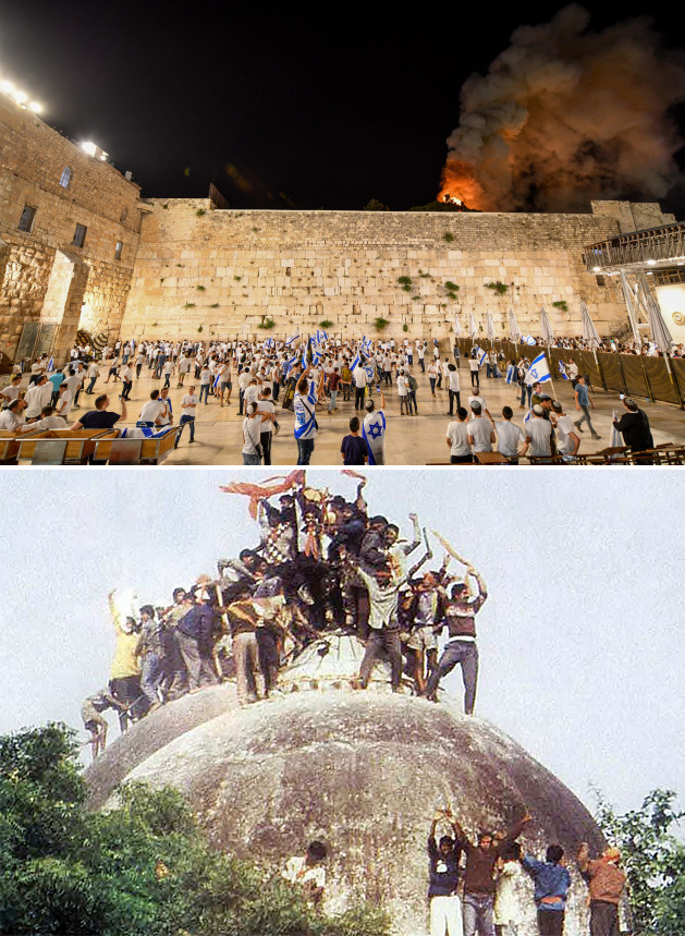 Politics of both — the Zionist state of Israel and the “in preparation” Hindu Rashtra — are built around othering of religious minorities — primarily Muslims. There are also striking similarities in some of the lunatic myths propagated by RSS and Sangh Parivar over last five decades and the myth propagated by Zionist historians and right wing organizations in Israel. One of these myths surrounds the historic Al Aqsa mosque in Israel, just like the (now demolished) Babri Masjid in India.