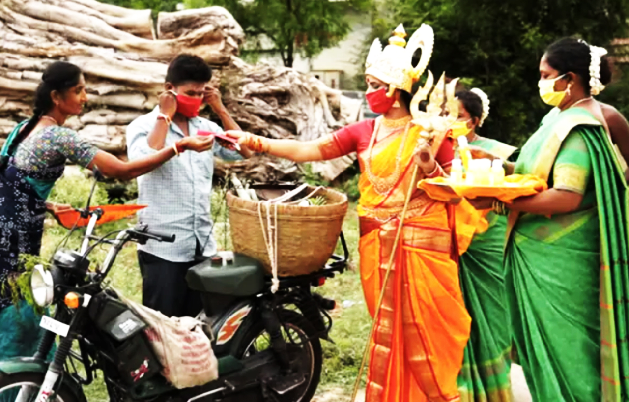 Feature image: NDTV (woman dressed as Mariamma distributing masks in rural TN)
