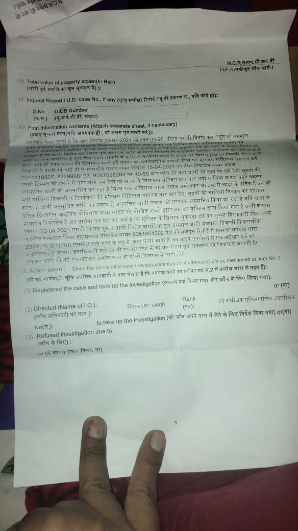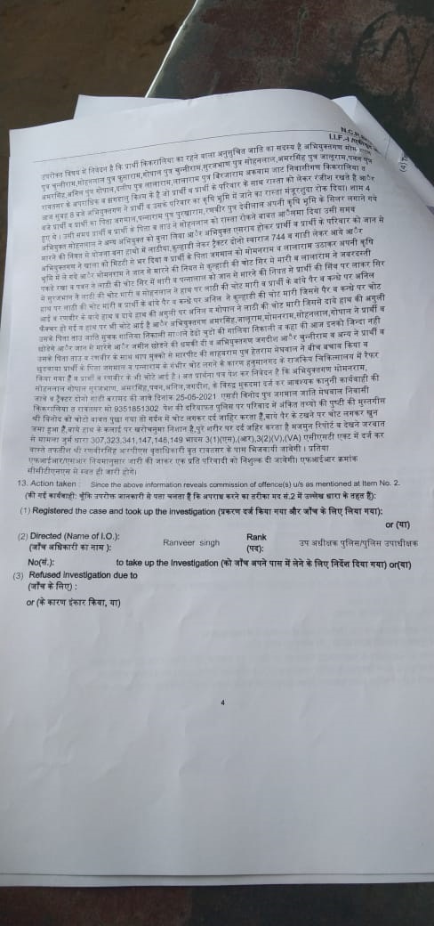 When the dalit youths were being threatened with murder, they had lodged FIR on two different occasions along with the call recordings of the threats to the police, but no action was taken by the administration. The silence of the police and their reluctance to act and arrest the miscreants even in such a serious case of caste harassment and threat to kill, emboldened the upper caste miscreants to carry out the murderous attack.